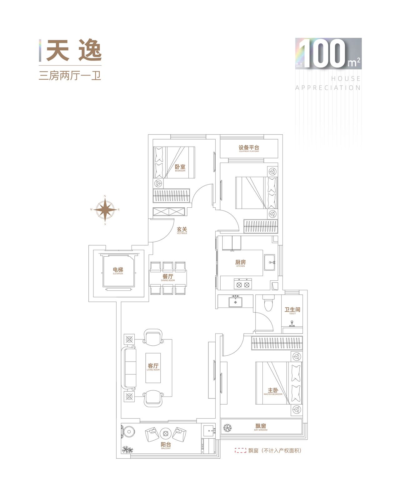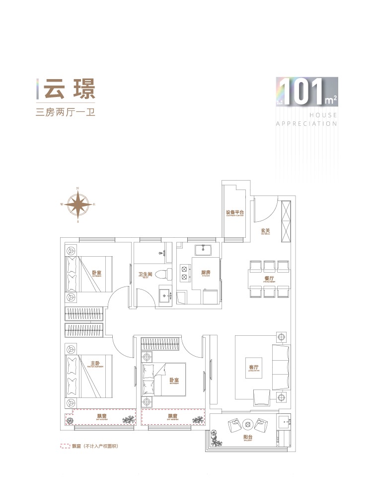 舒适全能三房,户型方正;三开间朝南,通透空间逐光而居;餐客一体化设计,动静合理区分; 超大阔景飘窗,开阔人生视野。