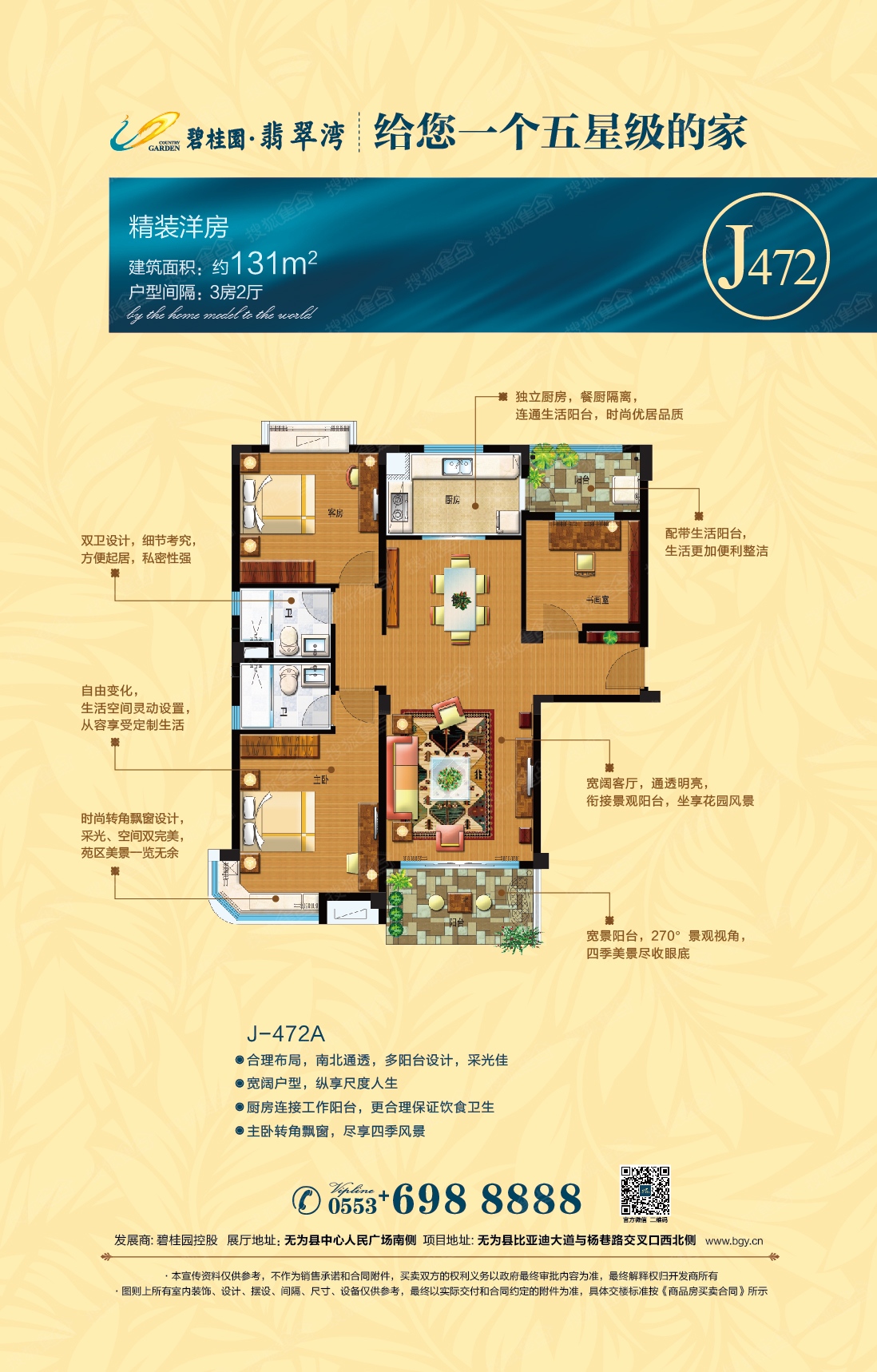 碧桂园无为项目正式确定案名为碧桂园翡翠湾,项目紧靠城南公园、背靠大西河,紧邻规划中的无为县政务核心区;无为县一中更是近在眼前。再加上碧桂园极致的园林绿化、人性化的规划以及舒适的人居设计,将为无为县人民完美呈现如诗如画的城市绿洲。 据悉,碧桂园翡翠湾首期汇集256㎡-512㎡豪华钻石墅、233-257㎡全临水风情西班牙风情美墅及87-131㎡全系精装洋房,设计沿用碧桂园一贯的风格,环境依林傍水,生态休闲,社区规划有凤凰俱乐部,设有健身房、乒乓球室、棋牌室等,更引进大型恒温泳池、室外无边际泳池等;更有商业U街,不出家门口即拥有繁华都市;更创新首层架空多主题泛会所带给广大无为市民,尊享国家一级资质物业.